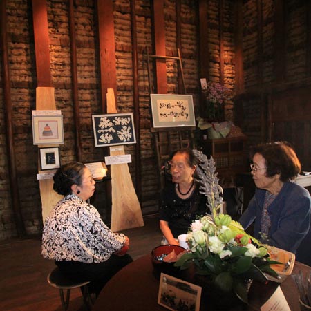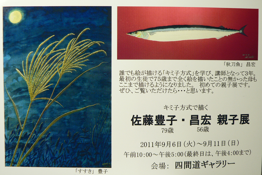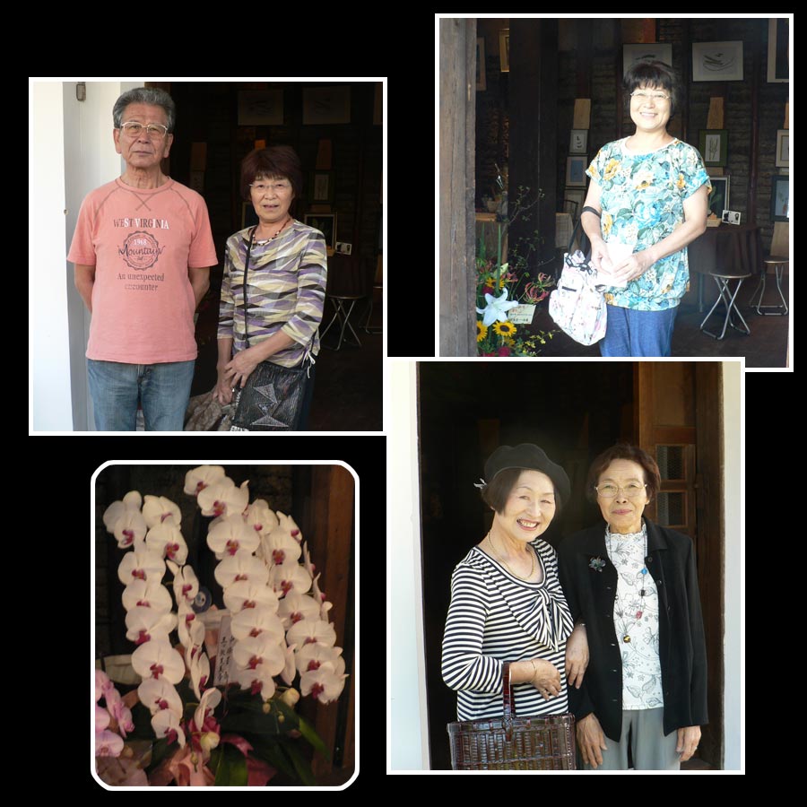 | 先日は親子展にお越しくださいまして誠にありがとうございました。 会場の場所が分かりづらかったにもかかわらず多くの方々にご来場いただき心より感謝しております。 会場では、母の元気さに驚いた、蔵の土壁に魅了された、杉板端材の展示方法や鈴虫の音色は良かったなど嬉しい言葉も 頂くことができました。 そして皆様のおかげで、母も私も久しぶりの親戚・友人・知人・同級生との再会で絵画展であることも忘れてしまうほど楽しい毎日でした。 またお会いできることを楽しみにしております。 佐藤豊子・佐藤昌宏 |