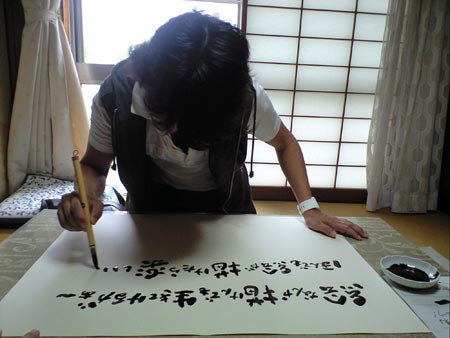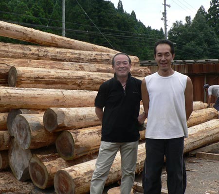 それでは、まず準備段階から見ていただきましょう! 展示用の材木でお世話になった、伊藤さん 書でお世話になった、渥美さんです。 |