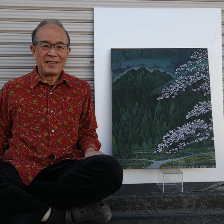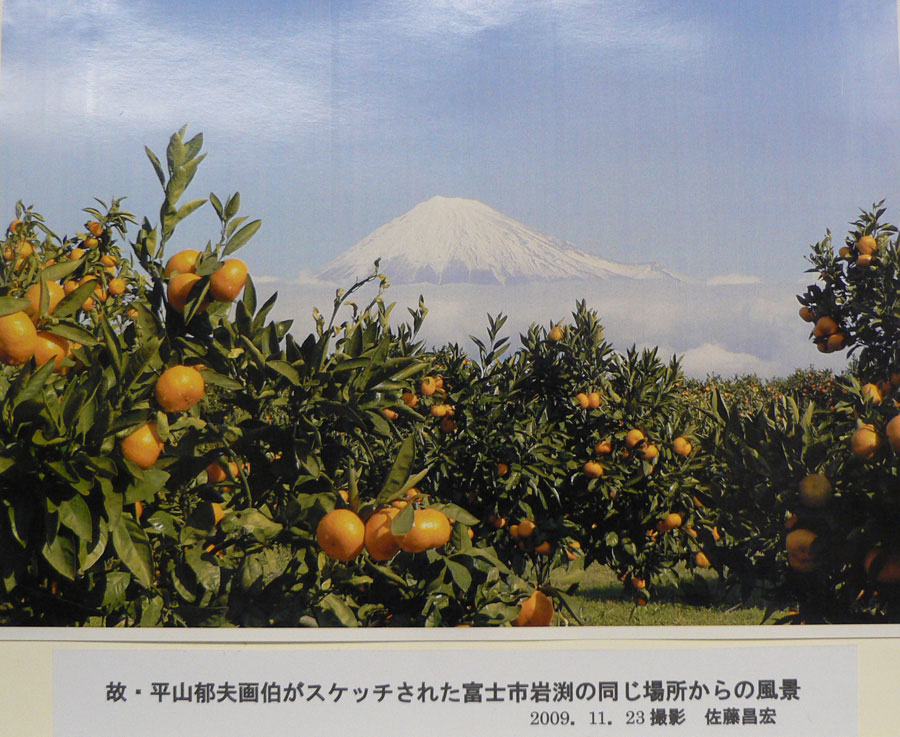 美術館にあった下書きをもとに、実際に現地(静岡)まで行って、その景色を自分の目で見た後、模写しました。