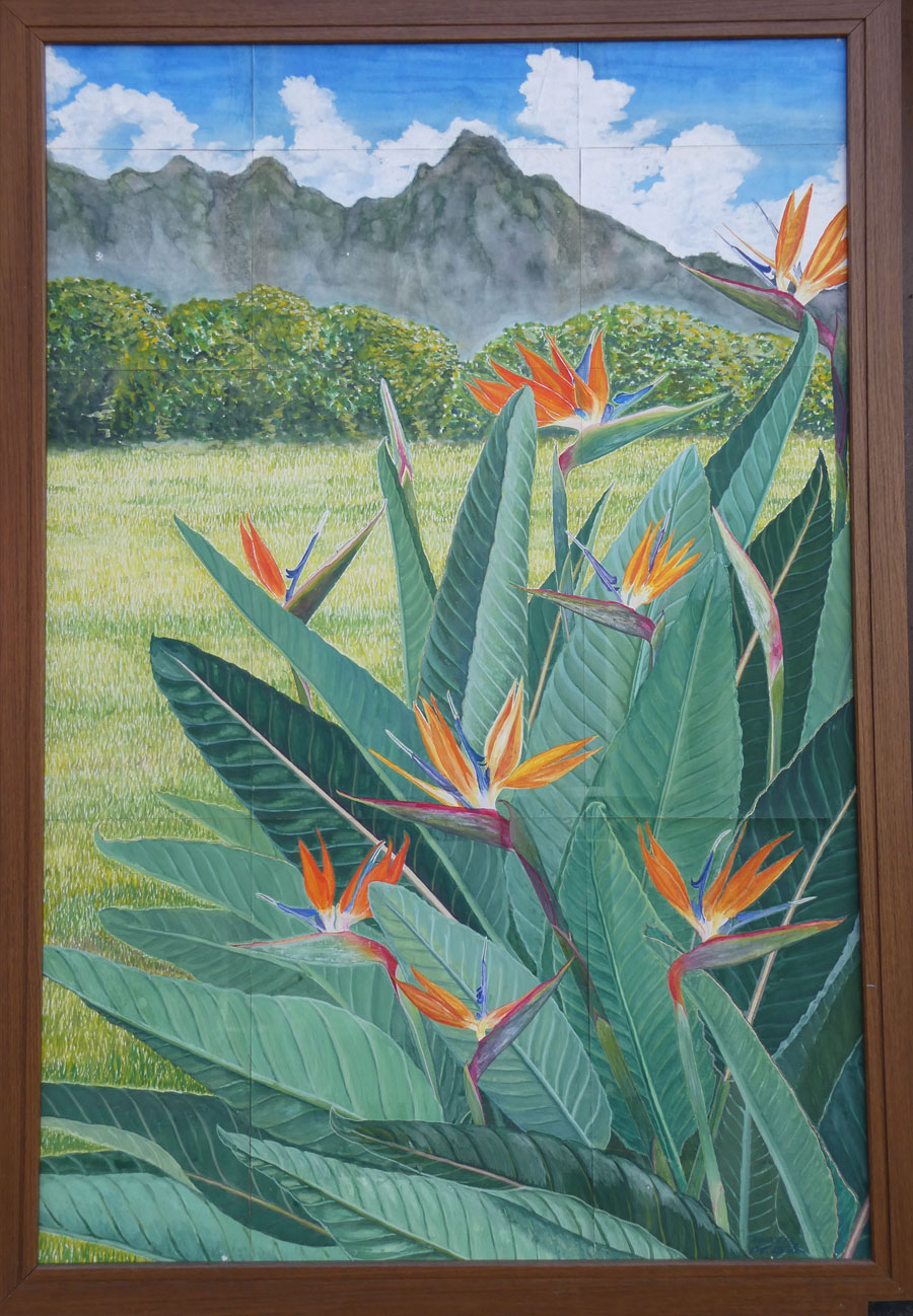 この絵は極楽鳥花が咲いている南の国を想像で描いたものです。