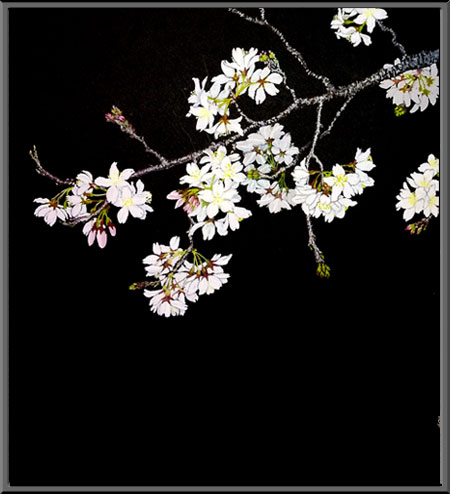 花の命は短くてスケッチしているうちには当然描ききれず、製作期間3ヶ月 全幅3m 5枚分割の作品となりました。