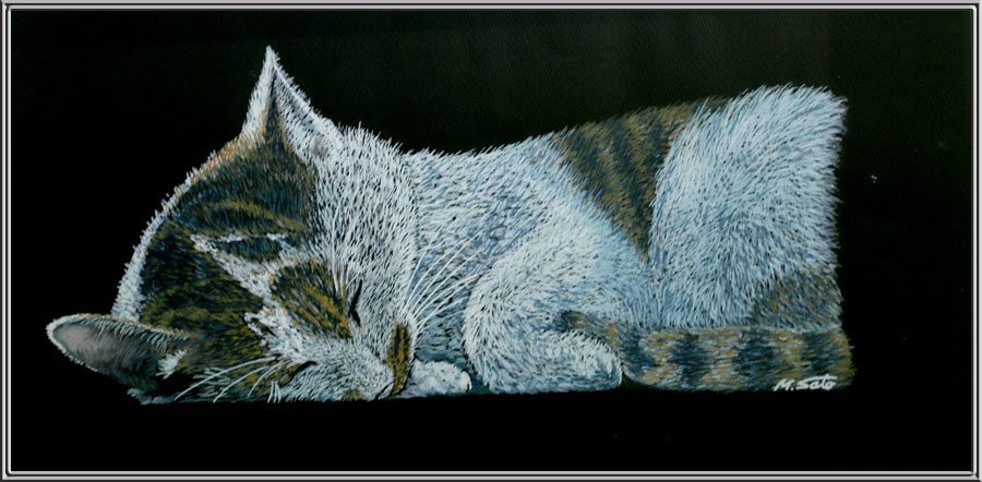 我が家の愛猫「ミニ」が気持ちよさそうに熟睡している様子を描きました。