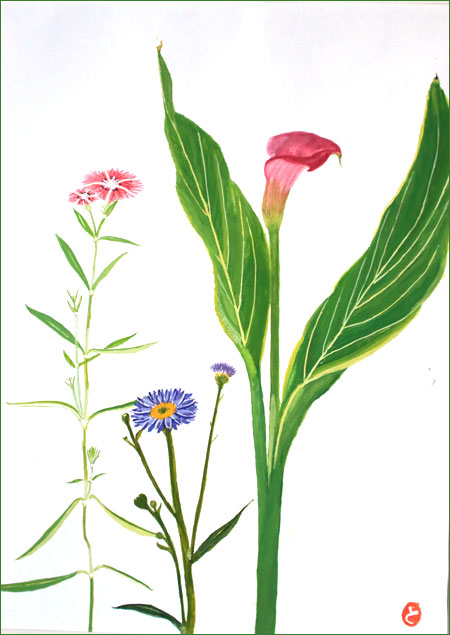 このページは74歳のとき初めて絵筆を持ち、満89歳までの作品を名古屋市市政資料館にて展示した