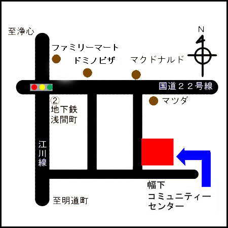幅下コミュニティセンター教室 名古屋市西区幅下1丁目9-30 アクセス:地下鉄浅間町駅2番出口より徒歩5分 市バス12系統六句町より徒歩5分 教室開催日 毎月第2土曜日 午前9:30:~午前12:00 午後13:30~午後16:00 毎月第3土曜日 午前9:30~午前12:00 午後13:30~午後16:00 |